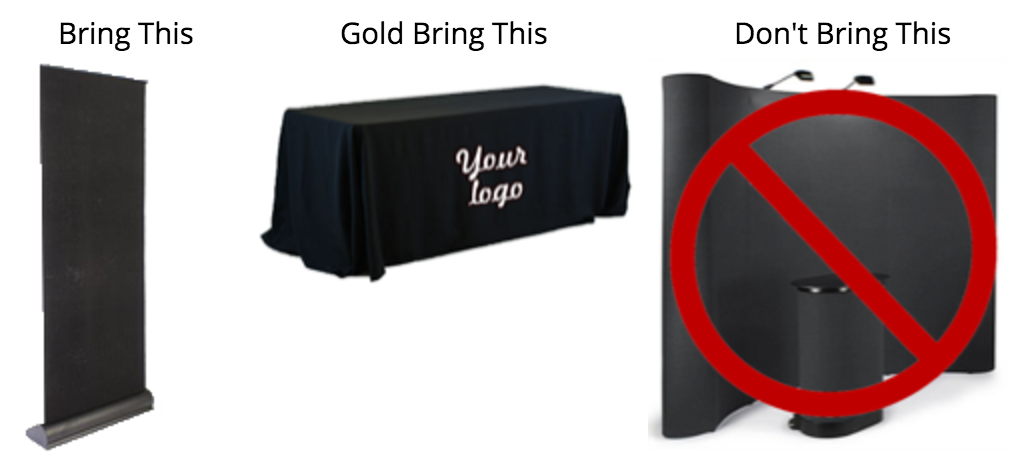 The sponsor area will be set up to encourage people to hang out and enjoy coffee breaks and meals. It isn’t designed like a big trade show with aisles of booths. You should bring retractable banners instead of traditional trade show booths.